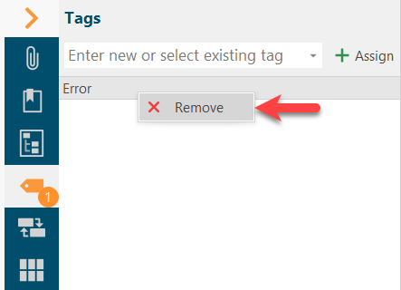 To assign a tag, enter it in the input field and click on "Assign". You can select an existing tag via the pull-down menu in the input field. Tags can be removed via the context menu (right mouse button).