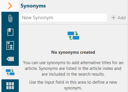 You can give an article one or more synonymous designations under which it is additionally listed in the Index, e.g.