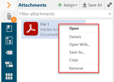 In the top section of the context area you will find all the Files assigned to an article or a reference, e.g.
