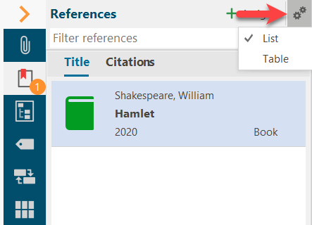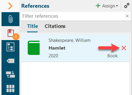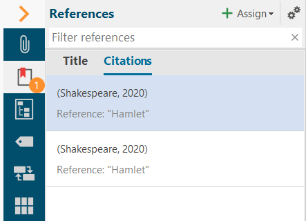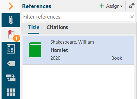 With the help of the toolbar you can add further references ("Assign"). You can change the view of the list using the switch icon with the cogwheels.