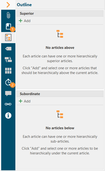 This area shows the articles that are superior or subordinate to an article, e.g.