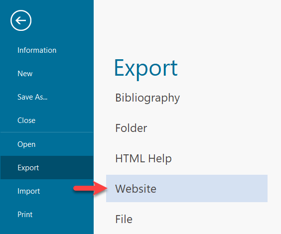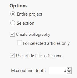 See also Bibliography Export, Folder Export, HTML Help Export and File Export