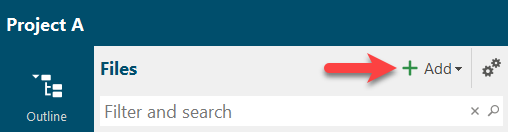 The file overview has its own toolbar. You can use it to add new files to the project.