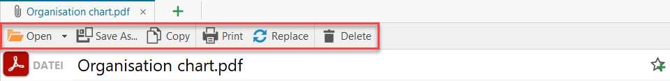 Using the context menu (right mouse button), you can open files directly from the file overview, save them locally, copy them to the clipboard or delete them.