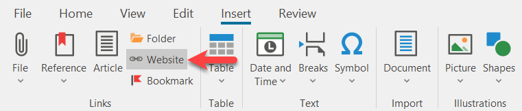 Then select in the "Insert" menu bar e.g. "Web page".