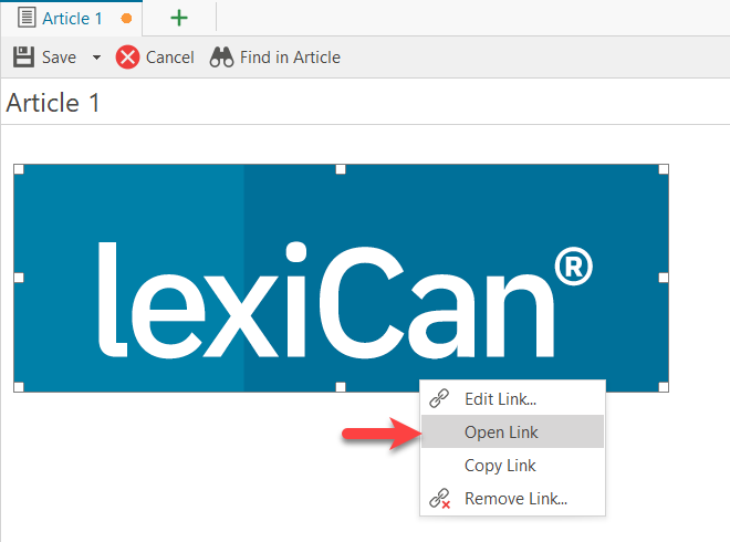 Normally, links can be opened by a simple click with the left mouse button. However, if an article is being edited, this is not possible. Here you must also hold down the CTRL key or use the context menu (right mouse button), e.g.