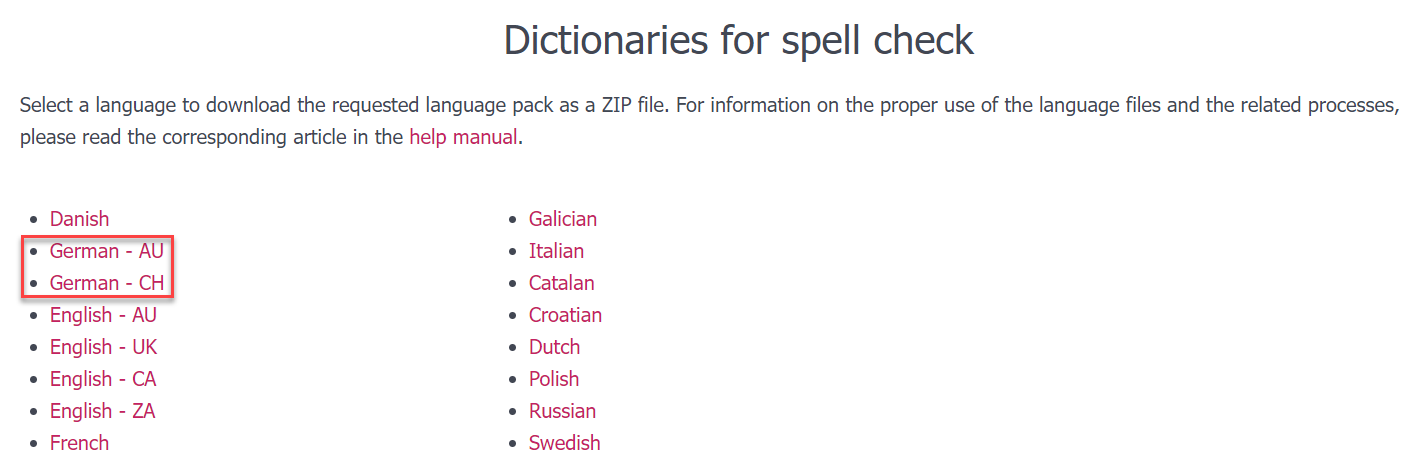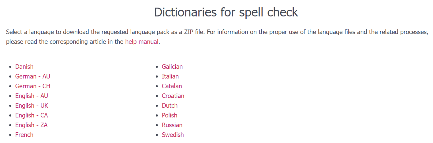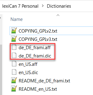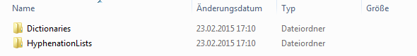 To integrate the dictionaries into your program installation, unzip the ZIP file you have downloaded. It usually contains two file folders (a hyphenation list is not available for all languages).