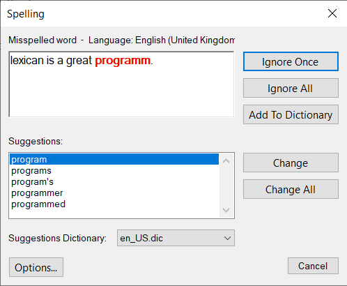 If a dictionary exists for the selected language, lexiCan now uses this for the spell check and, if possible, the list for hyphenation.