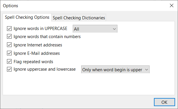If you click on “Spelling” within the menu bar "Review", a dialog box will give you further options for correcting errors.