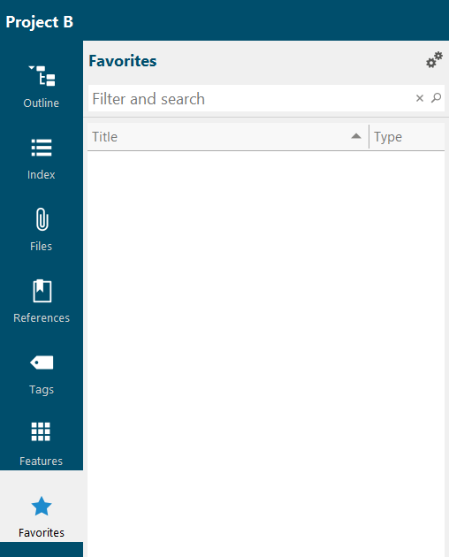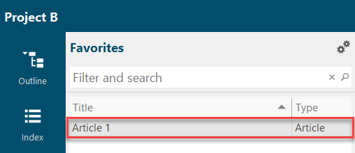 lexiCan allows the definition of "favorites", i.e. the marking of an article, a file or a reference as the favored content of a project - similar to bookmarks in a web browser. These favorites are listed within the Navigation in the "Favorites" section. In this way, you can reach particularly important or frequently used content more quickly.