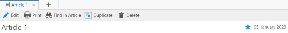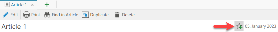 Defining an article, a file or a reference as a favorite is very simple. Simply click on the star symbol in the toolbar of the tab in the content concerned, e.g.