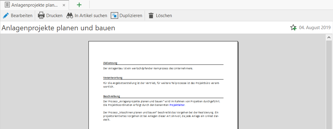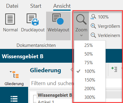 Mit der Zoom-Funktion können Sie den Artikel und seine Inhalte verkleinern oder vergrößern.