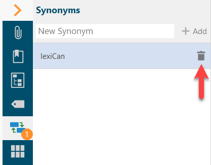 Deleting a synonym is done via the recycle bin icon.