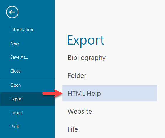 See also Bibliography Export, Folder Export, Website Export and File Export