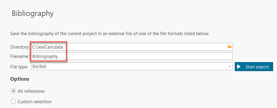 With "Custom selection" you can select the references to be exported after starting the export process, e.g.