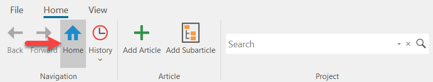 Each project has a start article, the article that is displayed first when the project is opened and can be called up at any time via "Home" in the "Start" menu bar.
