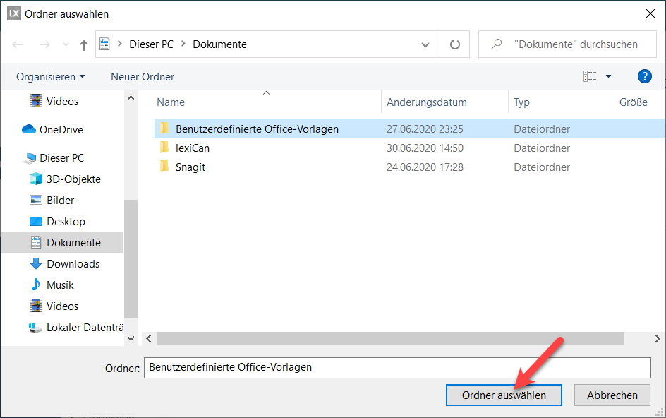 Navigieren Sie anschließend im Dialogfenster von Windows zum relevanten Dateiordner, z.B.